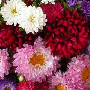 Très nombreuses variétés : simples ou doubles, de coloris blancs, bleus, lilas ou mauves, violets, roses ou rouges, de taille variant de 0,15 à 0,90 m.